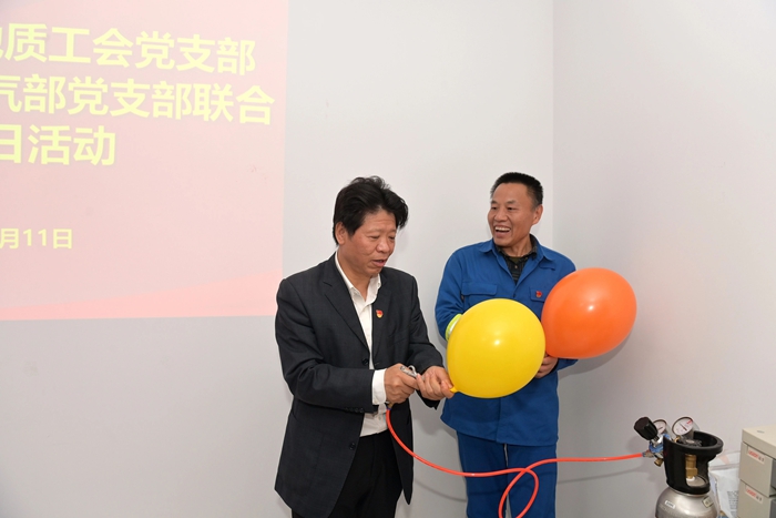 10月11日下午,中國能源化學(xué)地質(zhì)工會主席、分黨組書記蔡毅德,帶領(lǐng)該黨支部10余名黨員興致勃勃地走進北普公司安定工廠,與公司包裝氣黨支部的黨員同志們一起開展主題黨日活動。北京化工集團黨委副書記、工會主席吳瑞峰,集團工會相關(guān)負責(zé)同志,北普公司領(lǐng)導(dǎo)班子成員參加活動。